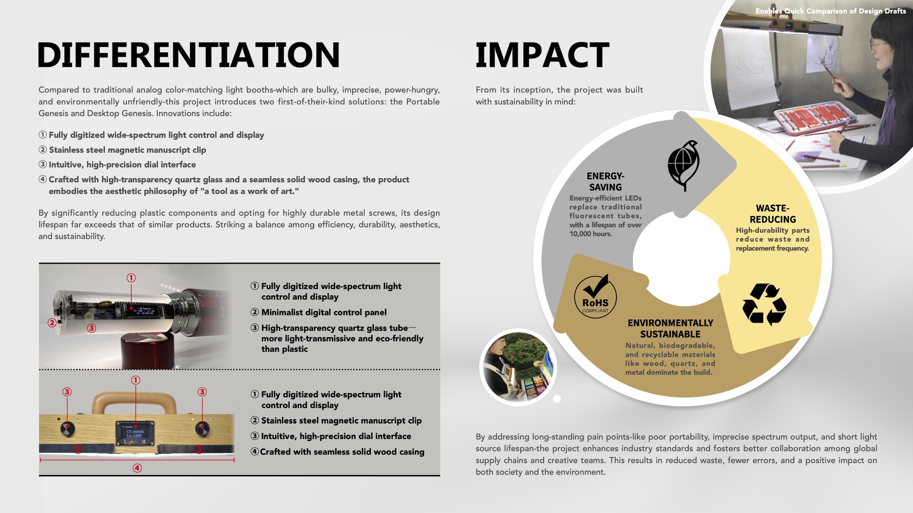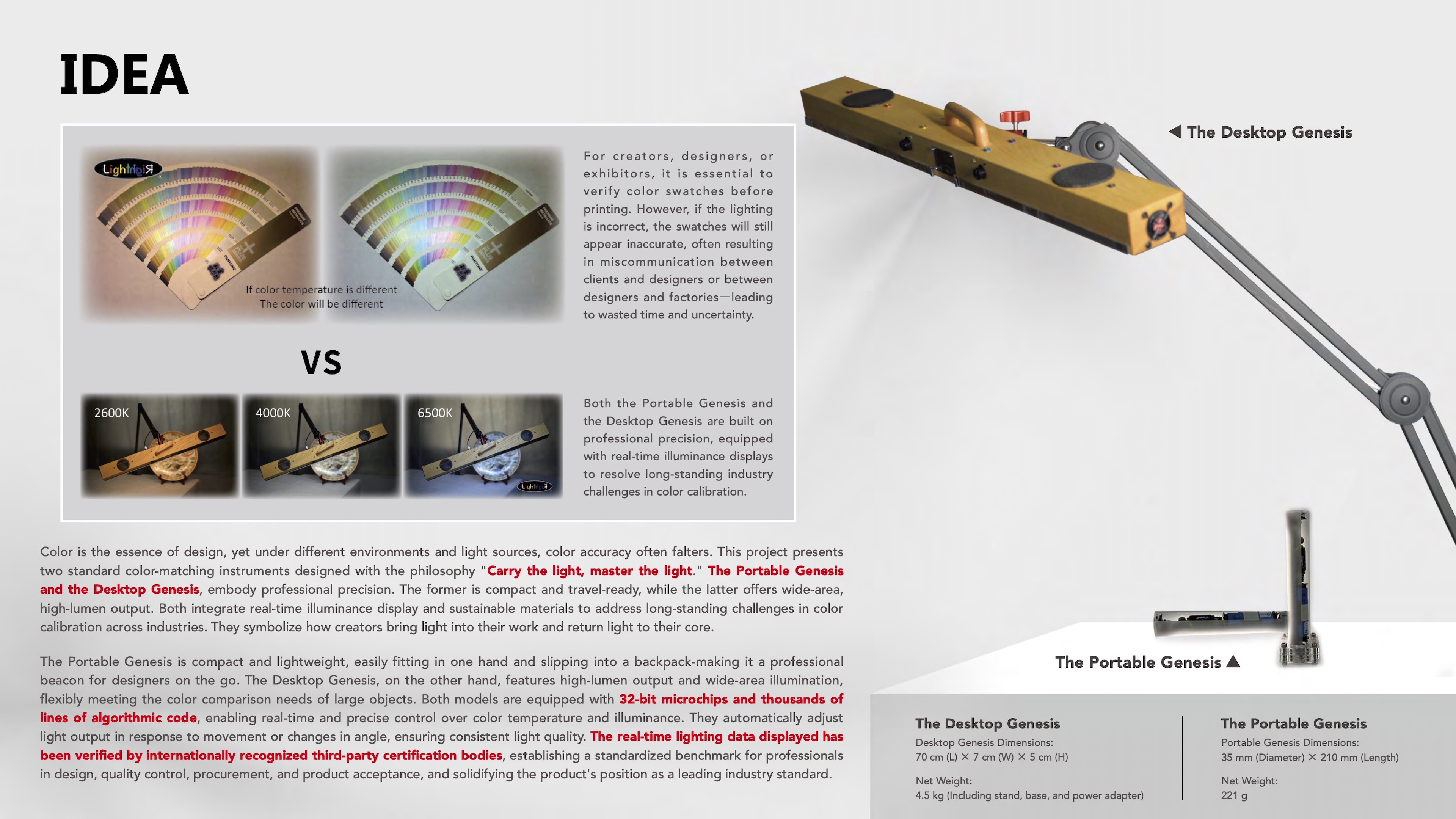![]() This product is Desktop, floor and wall-mounted smart lighting equipment, powered by "32-bits Dual-core microprocessor" Adjust and control "illuminance and color temperature", the full-load output can reach up to "4800 lux", the widest irradiation range can reach "120 degrees", the "1.3-inch LCD screen" on the lamp can display the current lighting conditions, and the color temperature can be adjusted from 2600K at will Up to 6500K", comes with a "magnetic suction type 100~240v transformer", the lamp is "up to 90cm after fully extended", the irradiation range is extremely wide, and the bracket can "freely adjust the angle", which is The best lighting and color correction tool for artistic creation, product design, business communication, production management and quality inspection. More... |